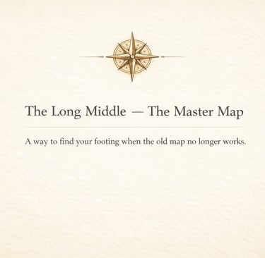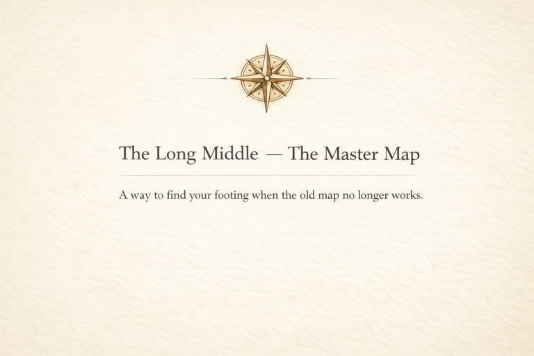 The Compass Points are ten orienting questions for the Long Middle — the stretch of life that comes after crisis, illness, loss, or upheaval, when survival is over but life hasn’t fully settled again.